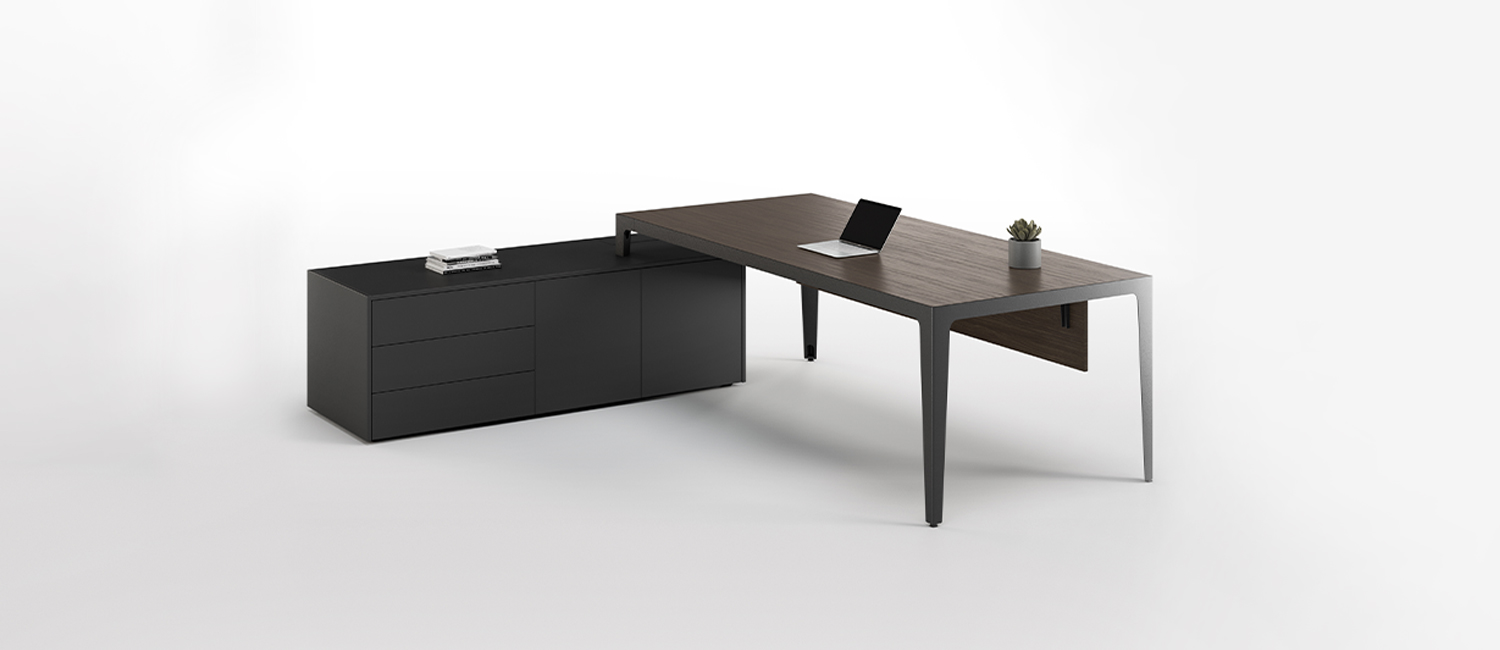 Η σειρά συνδυάζεται με τα απαραίτητα συμπληρωματικά στοιχεία όπως προεκτάσεις, συρταροθήκες, πλευρικά ερμάρια και τα απαραίτητα αξεσουάρ που δίνουν λύσεις σε κάθε σύγχρονη εργασιακό ή διευθυντικό χώρο εργασίας.