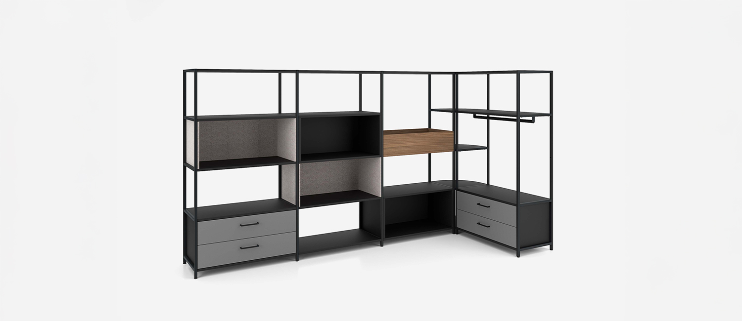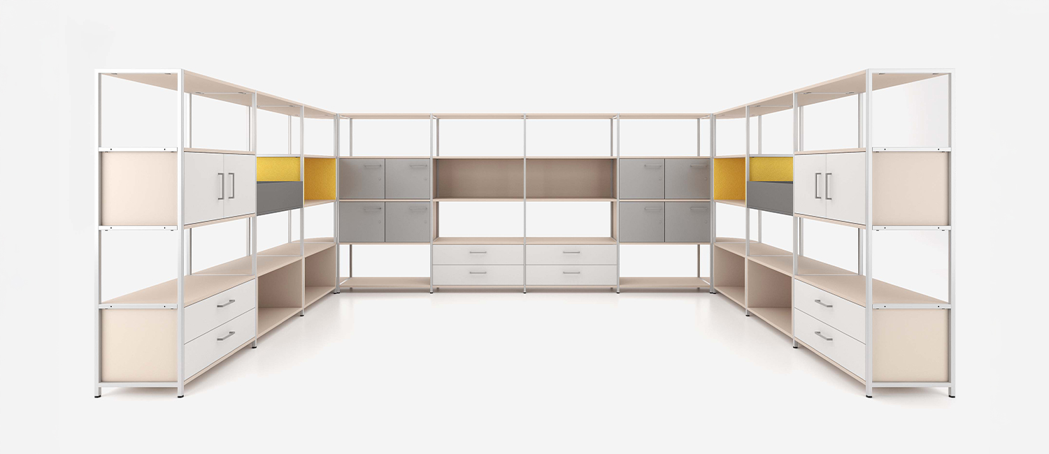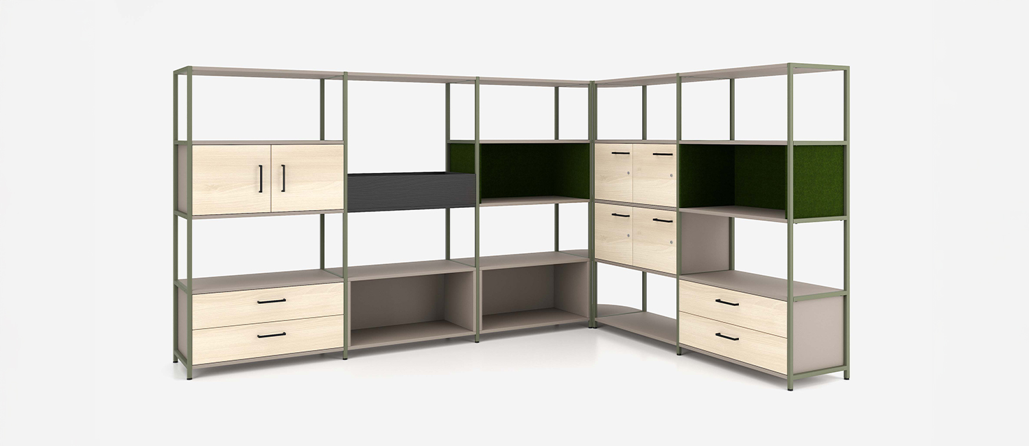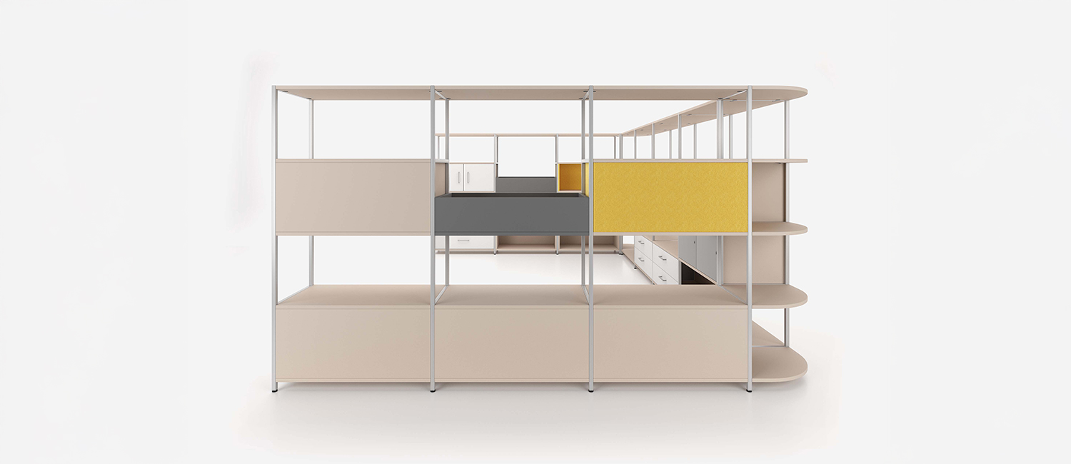 Κάθε χώρος απαιτεί διαφορετικές επιλογές. Το σύστημα ραφιών Aplo είναι ένα έξυπνο, αρθρωτό σύστημα που δίνει τη δυνατότητα να σχεδιάζετε τα έπιπλα για το γραφείο σας όπως εσείς θέλετε. Συνδυάζοντας ανοιχτά ράφια με μονάδες αποθήκευσης, ένθετα από τσόχα, γλάστρες και αξεσουάρ, μπορείτε να δημιουργήσετε ένα λειτουργικό περιβάλλον γραφείου που αντανακλά πραγματικά τις ατομικές ανάγκες και προτιμήσεις.