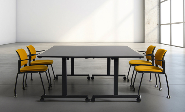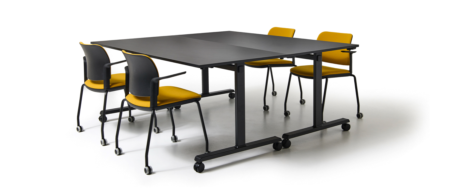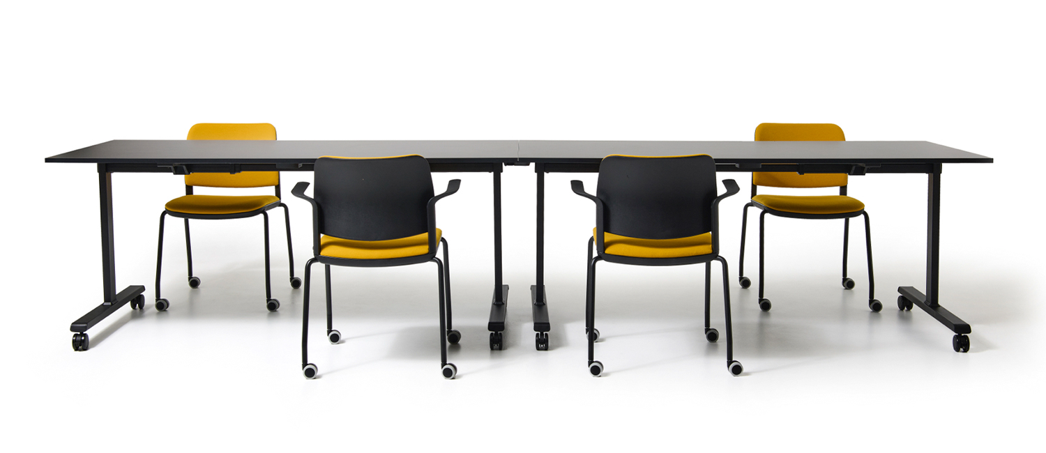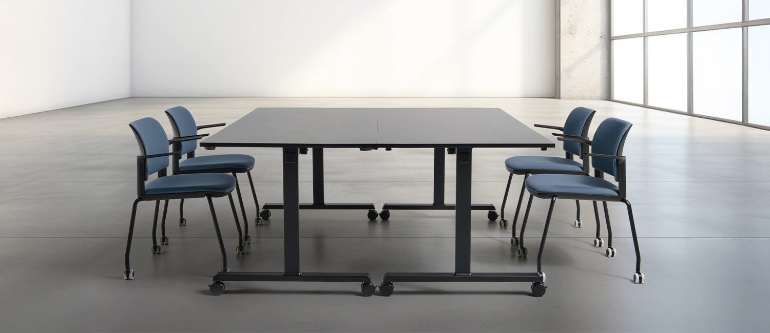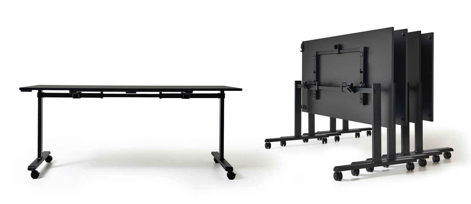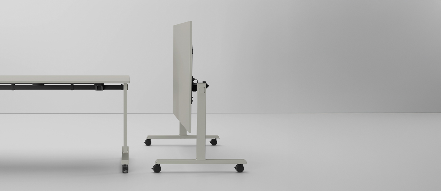 Η αναδιπλούμενη επιφάνεια, η οποία λειτουργεί με το ένα χέρι, επιτρέπει την γρήγορη αναδιαμόρφωση του χώρου, καθιστώντας το ιδανικό για αίθουσες συσκέψεων, αίθουσες διδασκαλίας, υβριδικά γραφεία και πολυ-λειτουργικά περιβάλλοντα.
