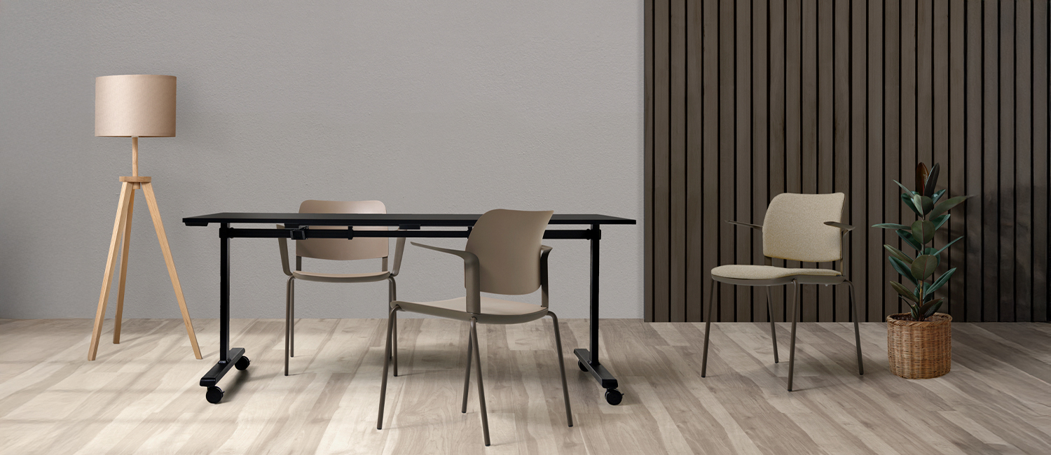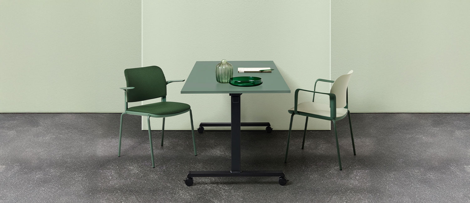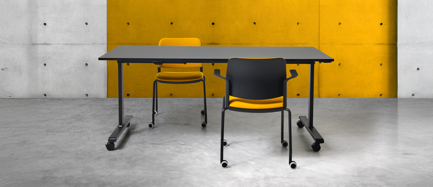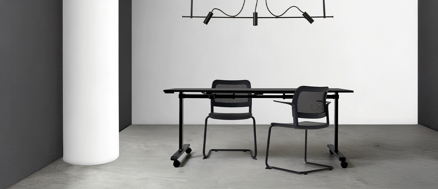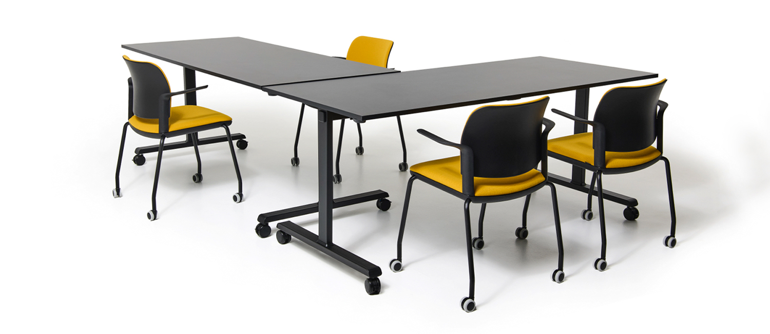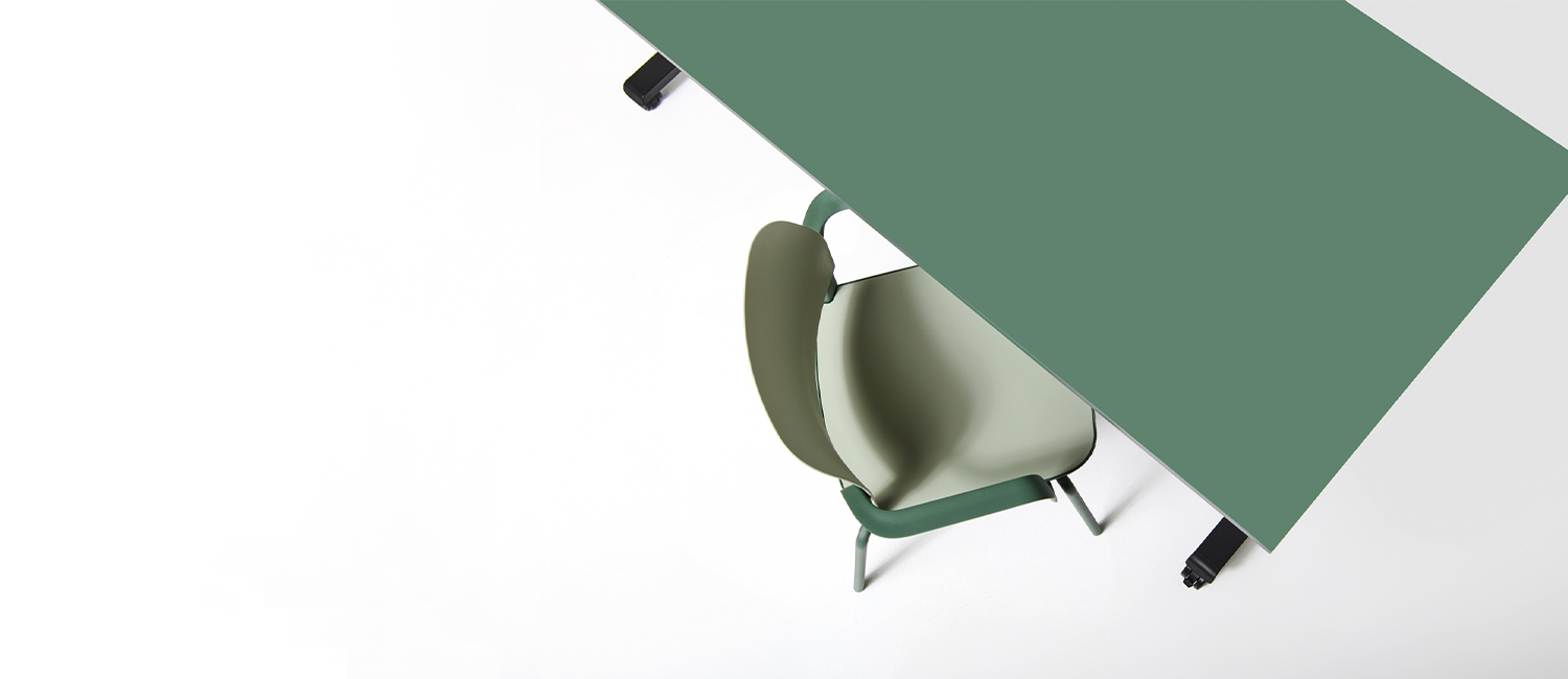Η αναδιπλούμενη επιφάνεια, η οποία λειτουργεί με το ένα χέρι, επιτρέπει την γρήγορη αναδιαμόρφωση του χώρου, καθιστώντας το ιδανικό για αίθουσες συσκέψεων, αίθουσες διδασκαλίας, υβριδικά γραφεία και πολυ-λειτουργικά περιβάλλοντα.