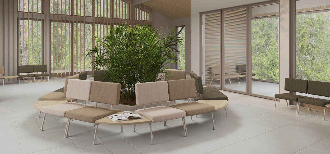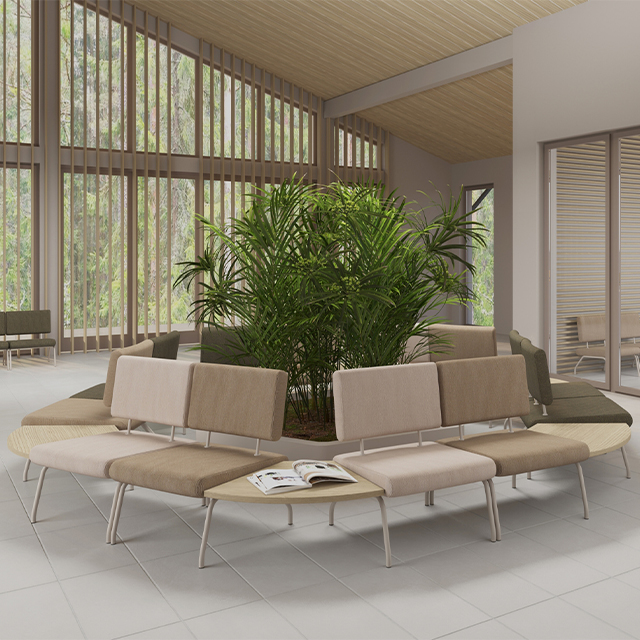 Τα στοιχεία της σειράς Conect II σάς επιτρέπουν να δημιουργείτε λειτουργικές διαμορφώσεις που ταιριάζουν απόλυτα με χώρους υποδοχής, αίθουσες αναμονής ή άλλους δημόσιους χώρους.