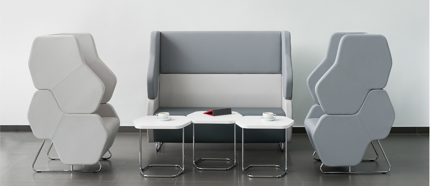 The Hexa modular seating line can be used to create a unique system that will work almost in every workspace, complementing its functional and aesthetic qualities perfectly. It helps create a hub that ensures acoustic isolation and section off zones that improve relationships between people.