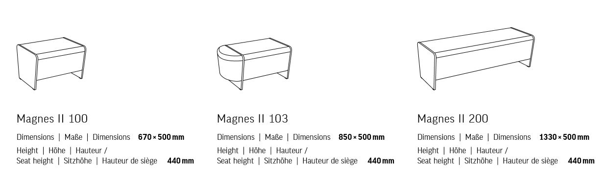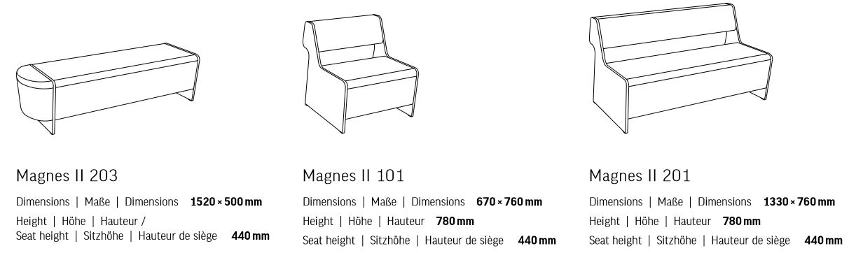 Magnes II is a modular seating system perfect for public spaces. The system's flexibility ensures free arrangement and configuration possibilities. It is a perfect solution for interiors of various types and sizes. It is perfect both for large spaces and small interiors. The line includes seats, tables, two-sided armchairs and other components that maximize the interior's functionality with a minimum number of elements. The structure of the Magnes II seats is made of chipboard laminated on both sides. The stable and solid structure ensures long-term utility, while the upholstered elements make the seat exceptionally comfortable. The varied range of colours of the upholstery materials allows interior designers to realise any of their visions.