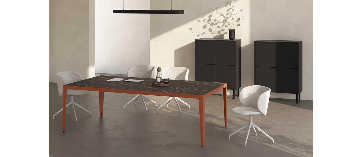 Η σειρά ολοκληρώνεται με μεγάλη και ευέλικτη συλλογή τραπεζιών συμβουλίου σε διάφορες διαστάσεις. Τα γραφεία Code είτε ανεξάρτητα είτε σε συνδυασμό με τραπέζια συμβουλίου δημιουργούν χώρους με προσωπικότητα και γεμάτους ενέργεια χάρη στις απαλές ρευστές γραμμές τους και τους υπέροχους χρωματικούς συνδυασμούς.