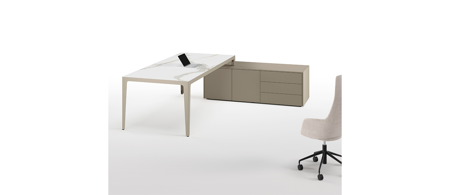 Η σειρά συνδυάζεται με τα απαραίτητα συμπληρωματικά στοιχεία όπως προεκτάσεις, συρταροθήκες, πλευρικά ερμάρια και τα απαραίτητα αξεσουάρ που δίνουν λύσεις σε κάθε σύγχρονη εργασιακό ή διευθυντικό χώρο εργασίας.