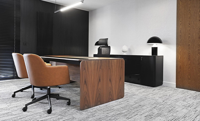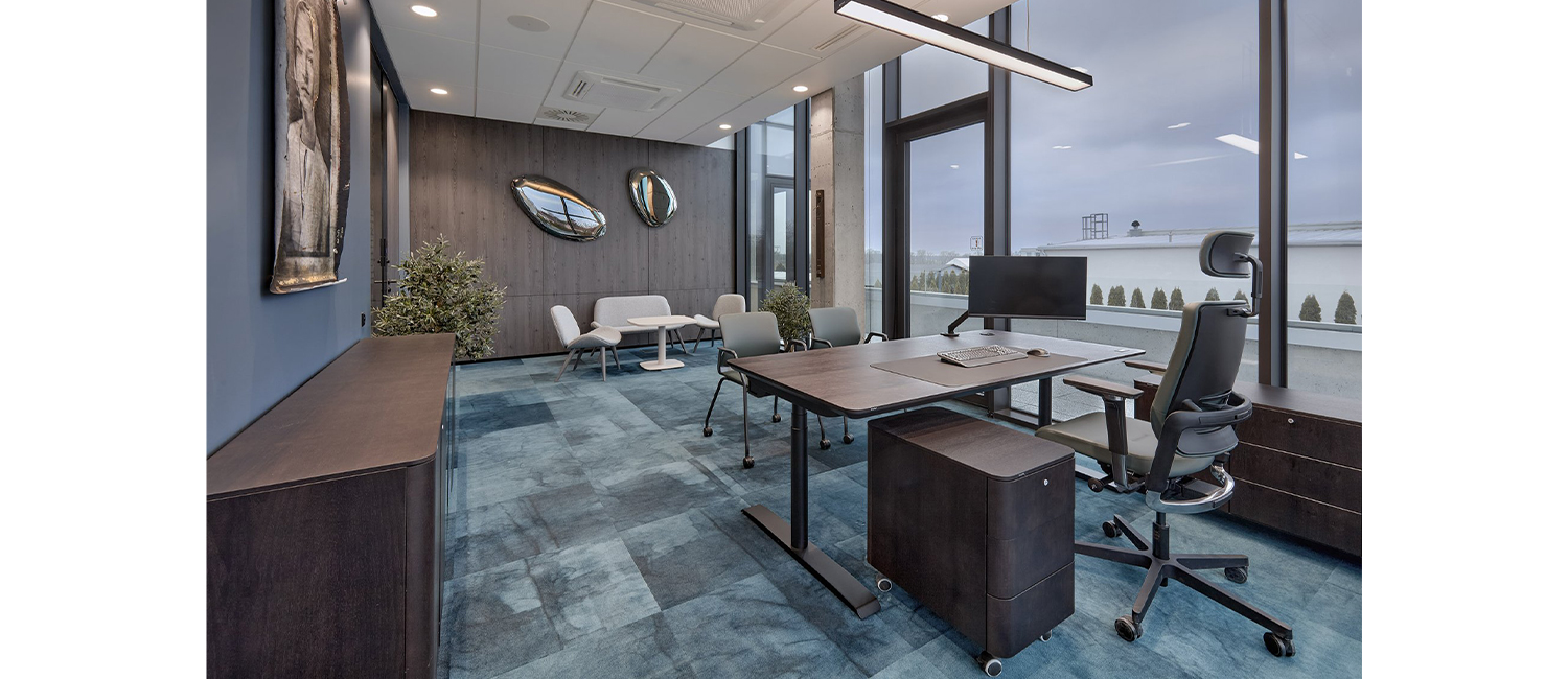 The eRange is one of the most ideal choice of veneer-lined executive office, developed in the design studio WertelOberfell. It effectively utilizes its interior by offering special wiring solutions, while the upper part of the executive office can be equipped with rounded leather covers or hardened glass covers.