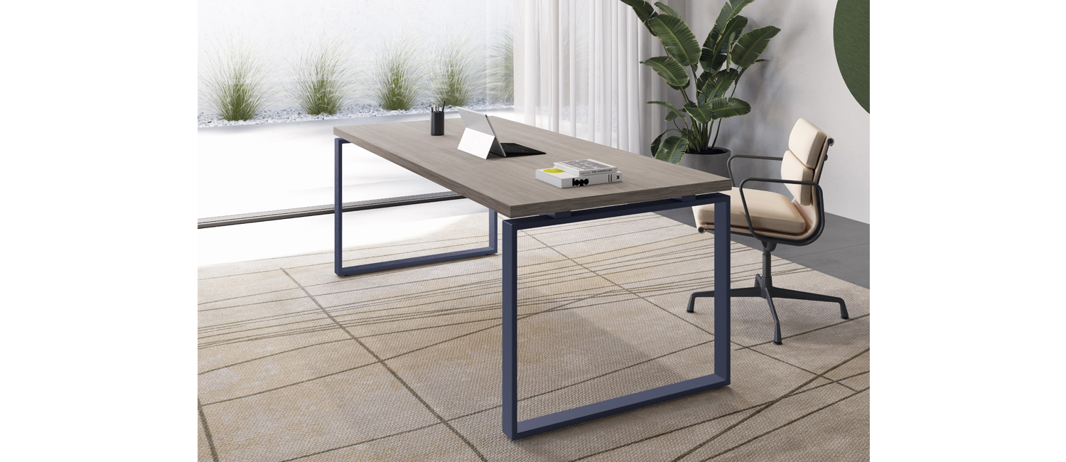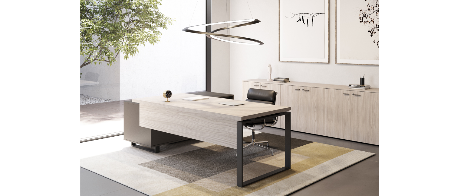 Executive furniture collection characterized by tables and functional elements in a single construction system.