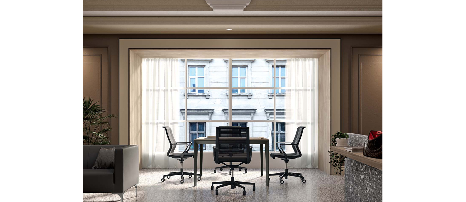 The minimalist design exudes a strong and distinctive character, which captures attention with its contemporary essentiality. The traditional shape of the executive seat is reinterpreted with a more distinctive style, while the quilting adds a dynamic touch.