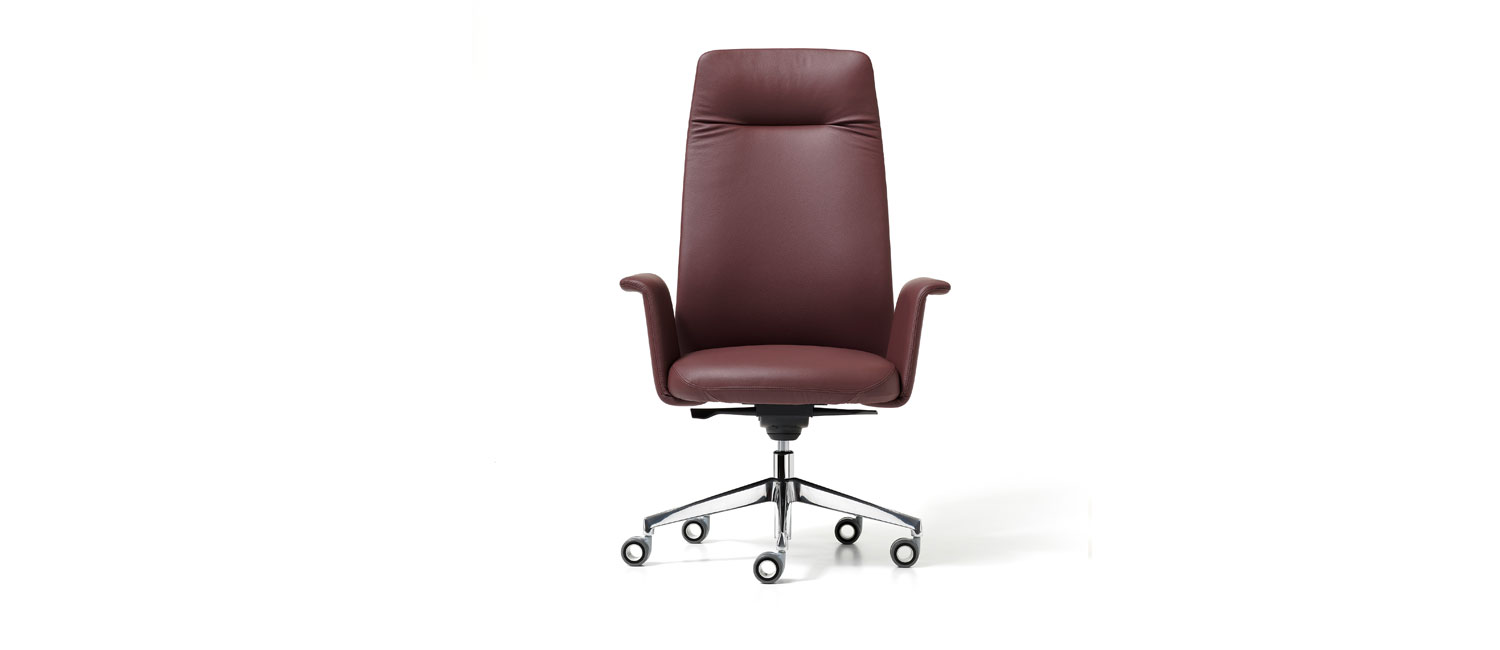 The Nicola Cacco designed JUL executive chair brings a touch of avantgarde modernity as well as sophistication also to managerial settings. Its forms are sleek but, thanks to great attention to detail, along with the feature creasing on the upper part of the backrest and tailcoat effect behind, richness and unique exclusivity are guaranteed. This results in a contemporarily innovative style, whilst at the same time retaining elegance and grace.
