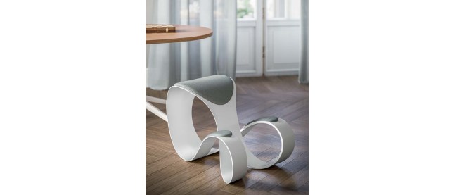 Moon, the result of a research carried out on paper, is a chair with an infinity-shaped design, conceived to combine aesthetics with comfort and create one with the body.